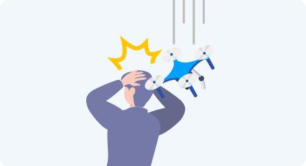 ドローンの操作ミスにより機体が落下し、通行人を負傷させてしまった。